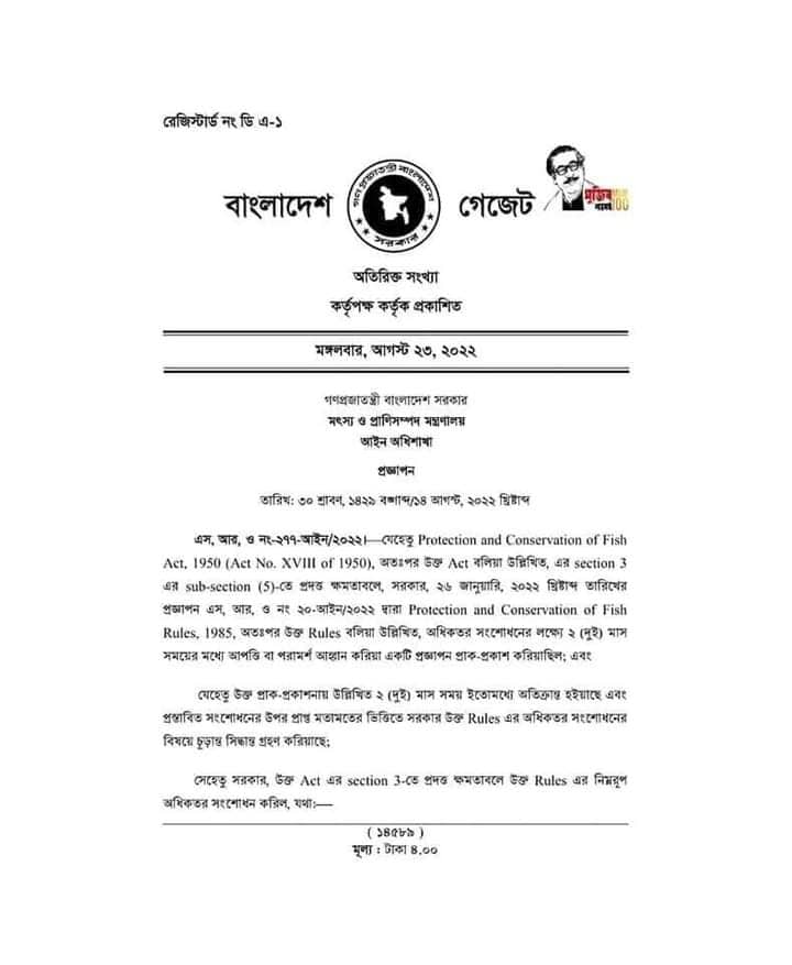 | ৪ | ফিক্সড ইঞ্জিন এর আওতায় মৎস্য সংরক্ষণ আইন ১৯৫০ এর অধিকতর সংশোধন (২৩ আগষ্ট ২০২২) | | ১৬-০৯-২০২২ | দেখুন |